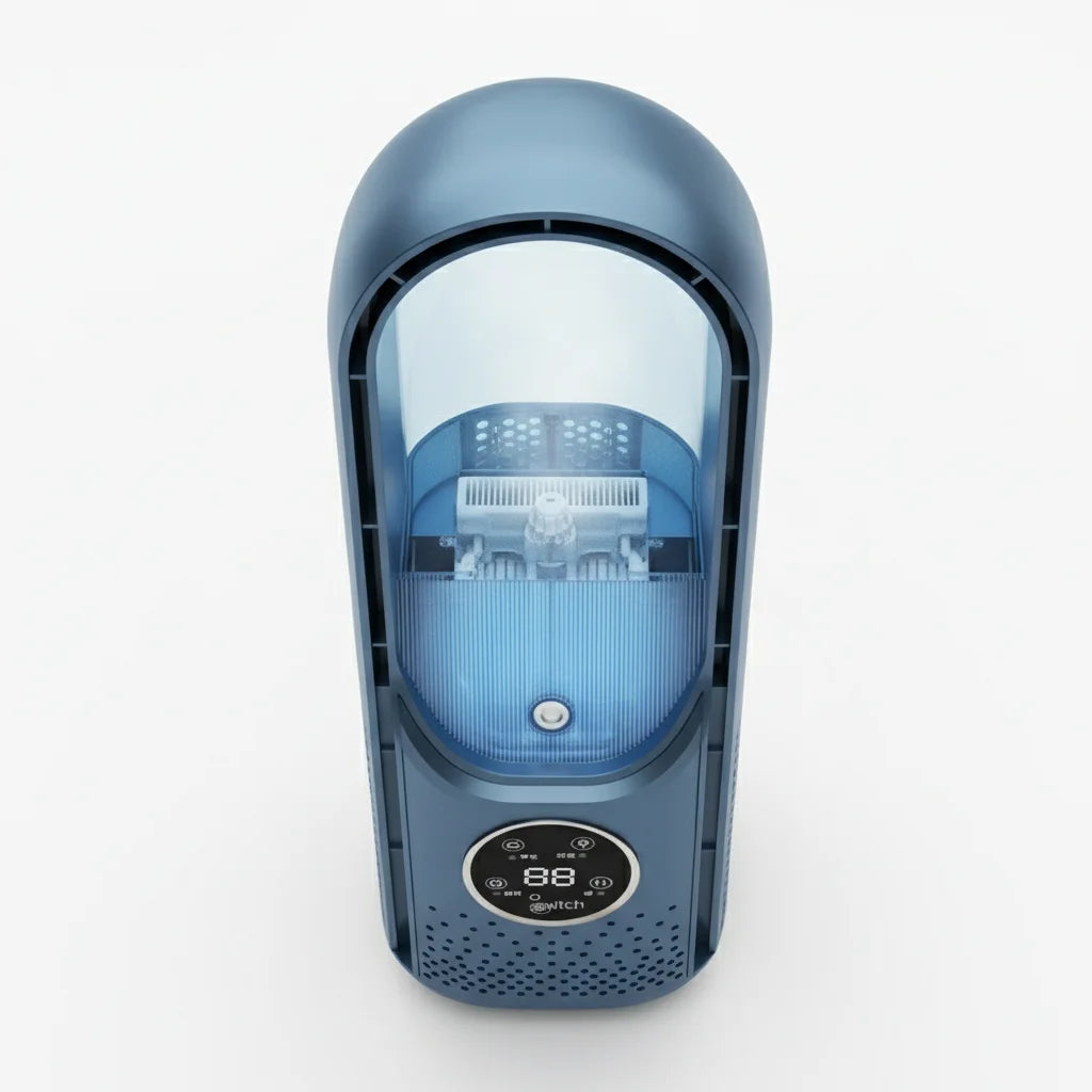 Say goodbye to distracting fan noise. This sleek, leafless cooler keeps your workspace perfectly chilled and whisper-quiet. Get focused, stay productive, and enjoy pure, humidified air without a single interruption. Your ideal work sanctuary, delivered.